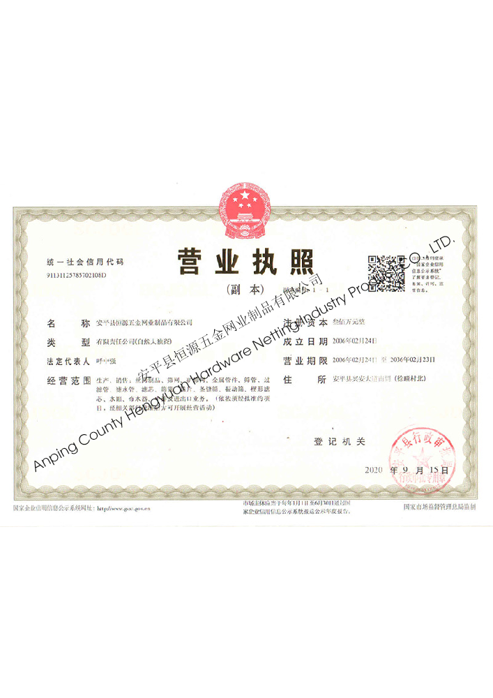 安平縣恒源五金網(wǎng)業(yè)制品有限公司,位于“絲網(wǎng)之鄉(xiāng)” 河北省安平縣,其前身為安平縣礦篩網(wǎng)廠,成立于2006年,注冊(cè)資金300萬(wàn)元,是建廠時(shí)間較早、生產(chǎn)銷(xiāo)量較大的礦篩網(wǎng)骨干企業(yè)。